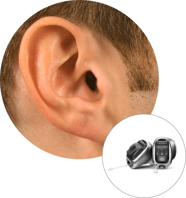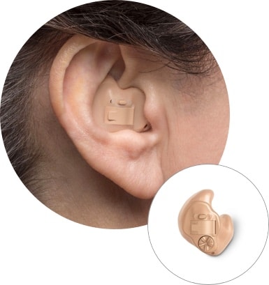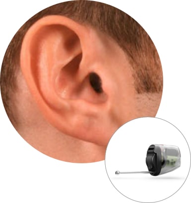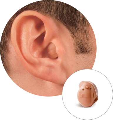 The entire hearing aid sits inside the ear canal, making it practically invisible.